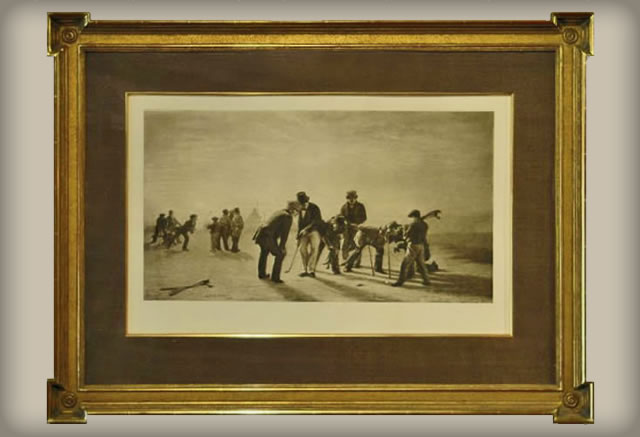 Original golf art, vintage prints, and sculptures depicting the legends and history of the game are fixtures in the great clubhouses of the world. We pride ourselves in finding “the best of the best” for your home, office or club. Call 800-449-4097 to speak to one of our experts on our staff who will help you pick out the perfect piece for your budget.