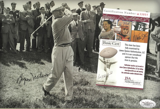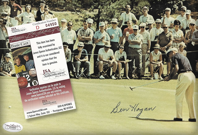 Golf Links to the Past is proud to guarantee the authenticity of every autograph we sell. We provide appropriate documentation from official licensees who have commissioned private signings, and we employ the services of leading independent autograph authenticating companies, James Spence Authentication (JSA), PSA/DNA, Beckett, NGC, CAS (Certified Authentication Service), to authenticate all other autographs.
